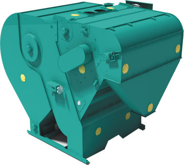 Подлежащий очистке зерновой ворох по зерноотводам поступает в загрузочный шнек, который равномерно распределяет материал по ширине сепаратора и подает по скатному листу на сетчатый транспортер.